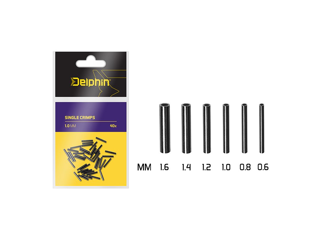 Jednoduchý, ale efektivní produkt Delphin Single CRIMPS využijete při tvorbě montáží s použitím fluorokarbonu či ocelového lanka. CRIMPS jsou tvořeny z měkkého, ale pevného materiálu, takže při jeho použití se návazec nepoškodí. Pro ideální spojení doporučujeme krimpovací kleště Delphin CRIMPER. Rychlé spojení, pevné smyčky, moderní montáže - při tomto všem využijete Delphin Single CRIMPS. V balení naleznete 40 kusů a vybrat si můžete z rozměrů 1mm, 1.2mm, 1.4mm a 1.6mm.Doplňkové parametry