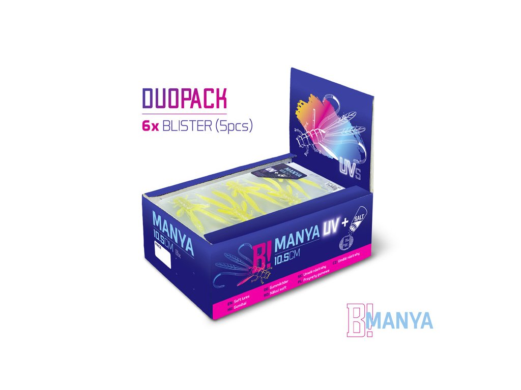 Realistická, velmi účinná, ale hlavně atraktivní. Toto jsou tři nejdůležitější aspekty, na kterých jsme zapracovali při tvorbě nástrah MANYA UVs. Inspirovali jsme se reálnými druhy hmyzu a vytvořili ten vlastní, který poblázní každého predátora. Tělo nymfy je vymodelováno s těmi nejmenšími detaily jako jsou chloupky na nožičkách či vystouplé oči. Tyto detaily posouvají úroveň nástrah na zcela nový rozměr. Všechny části nástrahy mají vliv na výjimečné vibrace ve vodě, čímž zvětšují dosah své účinnosti nejen z vizuální, ale i zvukové stránky. Nástraha krásně plachtí a při popouštění ladně propadává ke dnu. Na zádech nástrahy je umístěn zářez pro umístění háčku, a také slouží k určení polohy nástrahy. Nástrahy typu nymfa ocení hlavně rybáři, kteří preferují lov s Dropshot systémem nebo pomocí čeburašky. Asi se ptáte, co vlastně znamená označení UVs. Jednotlivé barevné kombinace jsou totiž opatřeny UV barvami, které způsobují lepší odraz slunečního záření pod vodou, a tím pádem se nástrahy stávají nepřehlédnutelnými. Nezapomněli jsme ani na pachovou stopu, kterou pryžové nástrahy zanechávají ve vodě. Právě S symbolizuje, že nástrahy obsahují sůl a rybí aroma a jsou tak neodolatelným cílem predátorů. Provedení MANYA UVs nabízí širokou škálu těch nejúčinnějších barevných provedení, která byla vybrána na základě dlouhodobých testů na vodních plochách po celé Evropě. Balení DuoPACK Nástrahy jsou baleny v unikátním balení Delphin DuoPACK. To umožňuje samotné nástrahy prodávat buď zavěšené v blistrech jako celek, nebo jako kusovky z plnobarevného prezentéru! Samotný blistr DuoPACK obsahuje 5ks nástrah. Ucelené krabicové balení DuoPACK tvoří 6ks takových blistrů jedné barvy a délky.Doplňkové parametry
