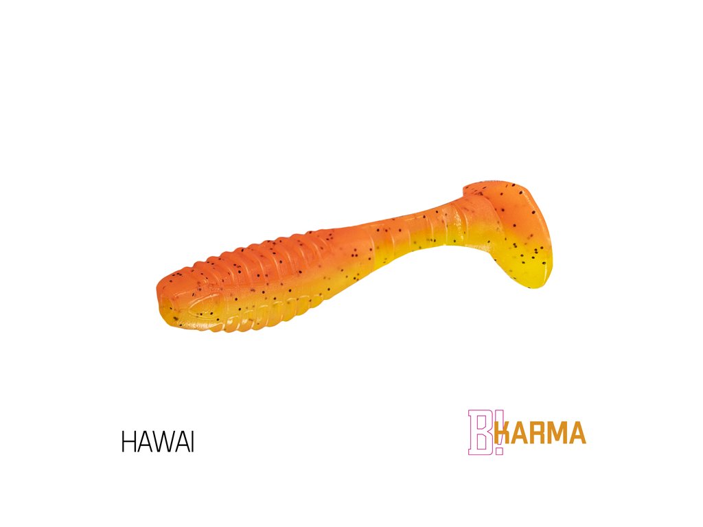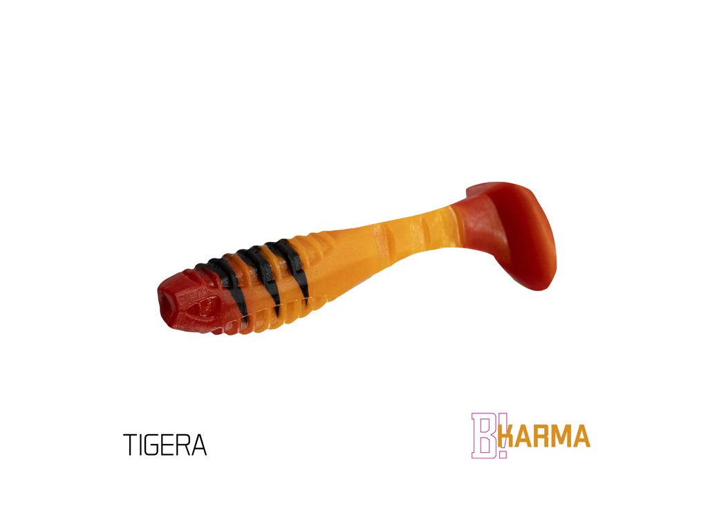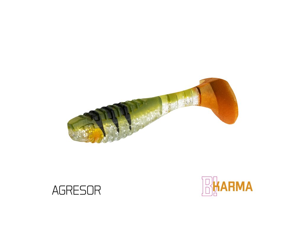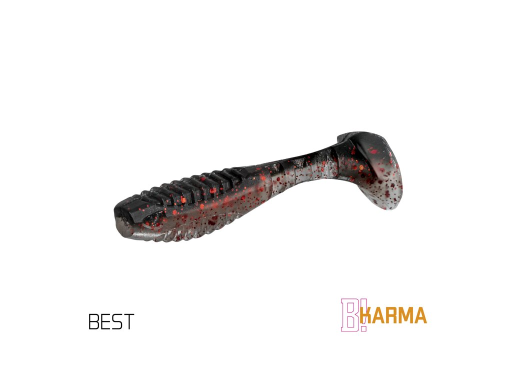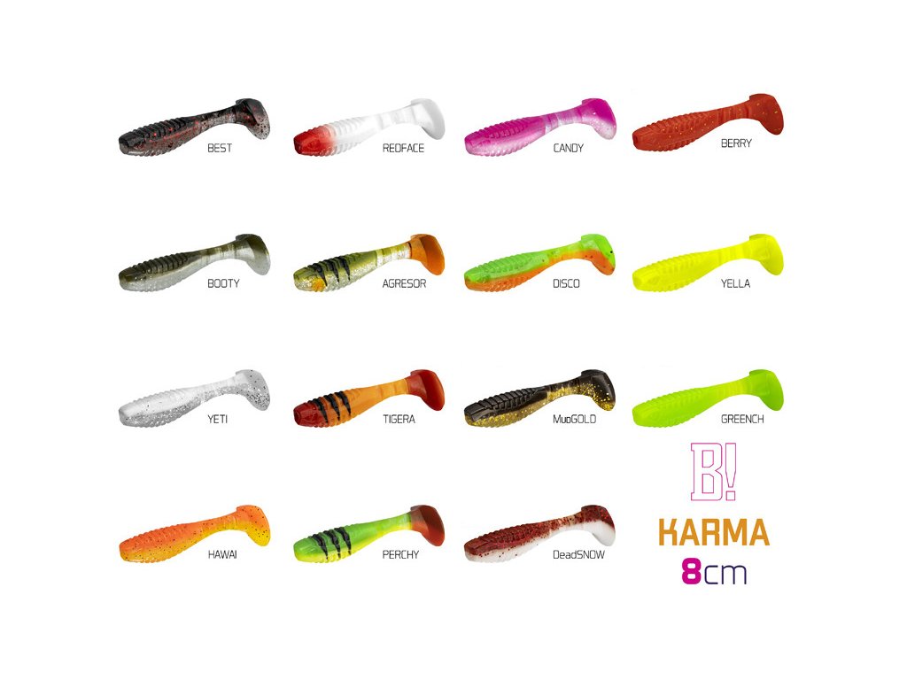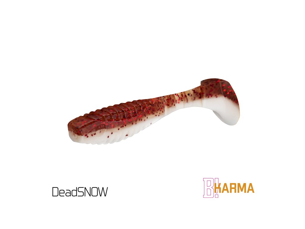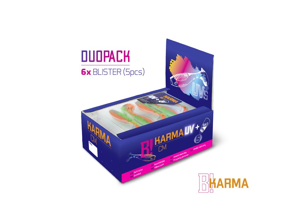 Design modelu KARMA jsme od počátku brali jako neklasické řešení klasického modelu. Cílem bylo vytvořit nástrahu se širokým záběrem použití, ale po našem. Již při prvním pohledu si můžete všimnout, že poměr velikosti těla k ocasu nástrahy je odlišný od běžného. Větší ocas nástrahy zapříčiňuje atypický pohyb nástrahy, který kromě kmitání ocasu přidává i jemné převalování tělíčka, což vytváří dojem zranitelného jedince. Tento pohyb je pro ryby nesmírně atraktivní a přináší vám nové možnosti v práci s nástrahou. Mezi spojením těla nástrahy a ocasu jsou vymodelovány tři zářezy, které dodávají chodu nástrahy uvěřitelnost. Samotné tělo nástrahy je na zádech a břiše opatřeno vroubkováním. Má to dva důvody. Prvním je zvětšení vibrací ve vodě. Druhým důvodem je usnadnění nastražení nástrahy na háček. Pomocí zářezů si můžete přesně vyměřit, kde bude háček z nástrahy vycházet. Proporční napíchnutí jigu je pak jednoduché. Přední část nástrahy v oblasti tlamy je upravena výřezem kvůli lepšímu dosednutí nástrahy k jigové hlavičce. Asi se ptáte, co vlastně znamená označení UVs. Jednotlivé barevné kombinace jsou totiž opatřeny UV barvami, které způsobují lepší odraz slunečního záření pod vodou, a tím pádem se nástrahy stávají nepřehlédnutelnými. Nezapomněli jsme ani na pachovou stopu, kterou pryžové nástrahy zanechávají ve vodě. Právě S symbolizuje, že nástrahy obsahují sůl a rybí aroma a jsou tak neodolatelným cílem predátorů. Provedení KARMA UVs nabízí širokou škálu těch nejúčinnějších barevných provedení, která byla vybrána na základě dlouhodobých testů na vodních plochách po celé Evropě. Balení DuoPACK Nástrahy jsou baleny v unikátním balení Delphin DuoPACK. To umožňuje samotné nástrahy prodávat buď zavěšené v blistrech jako celek, nebo jako kusovky z plnobarevného prezentéru! Samotný blistr DuoPACK obsahuje 5ks nástrah. Ucelené krabicové balení DuoPACK tvoří 6ks takových blistrů jedné barvy a délky.Doplňkové parametry